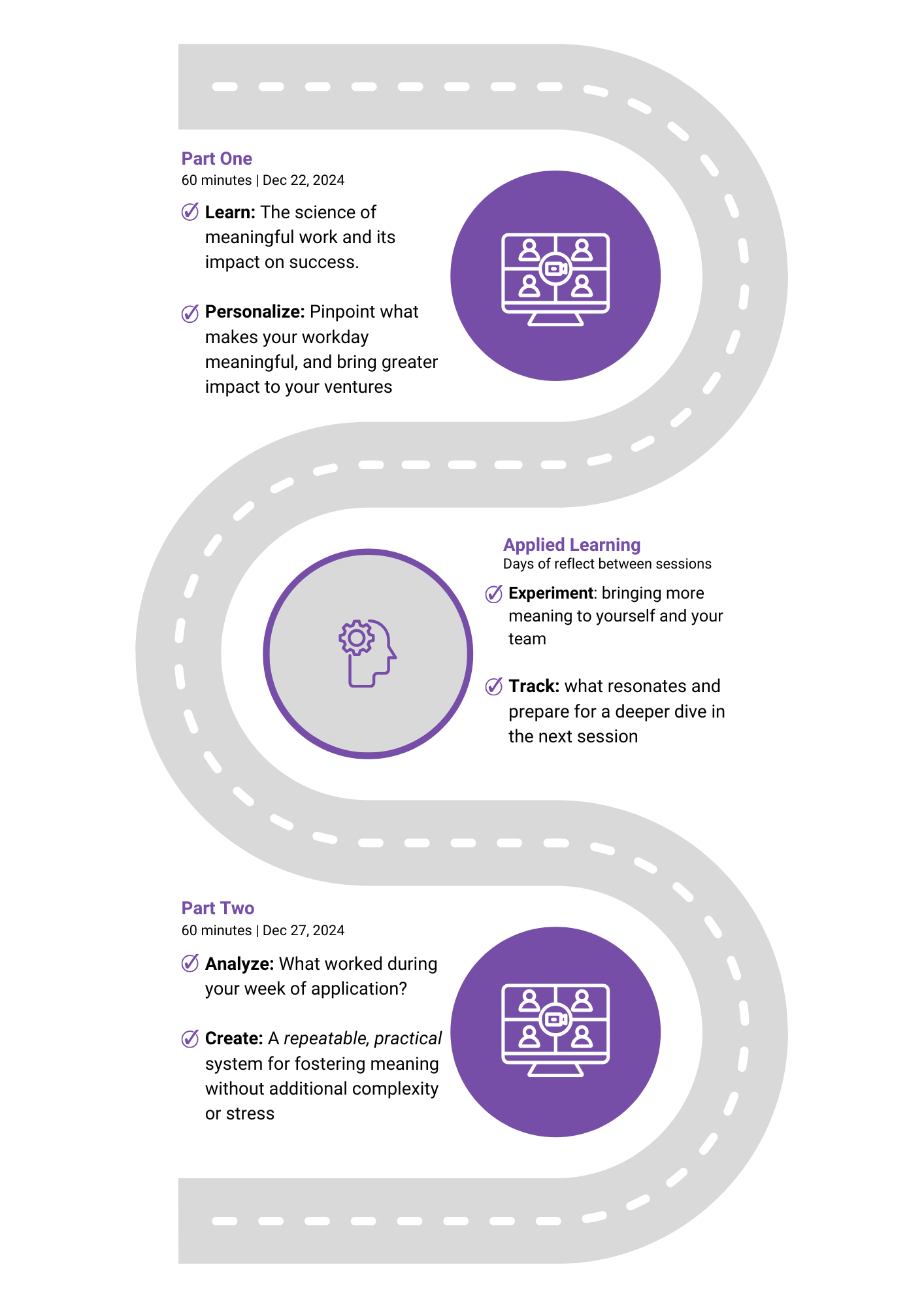 Leave with practical, context-specific and highly applicable insights tailored to your environment that you can start using immediately to foster meaning at work.